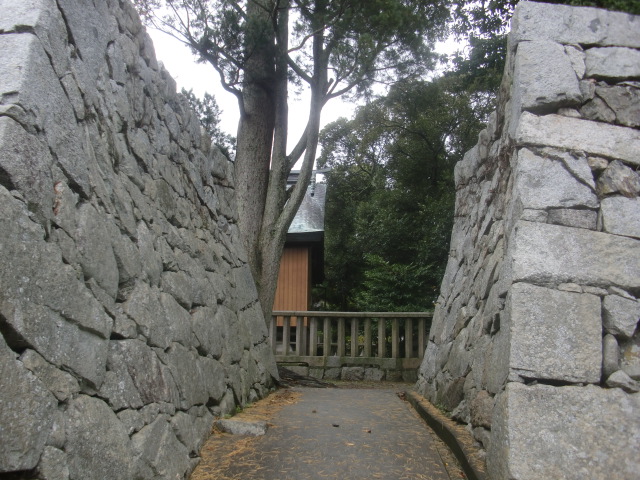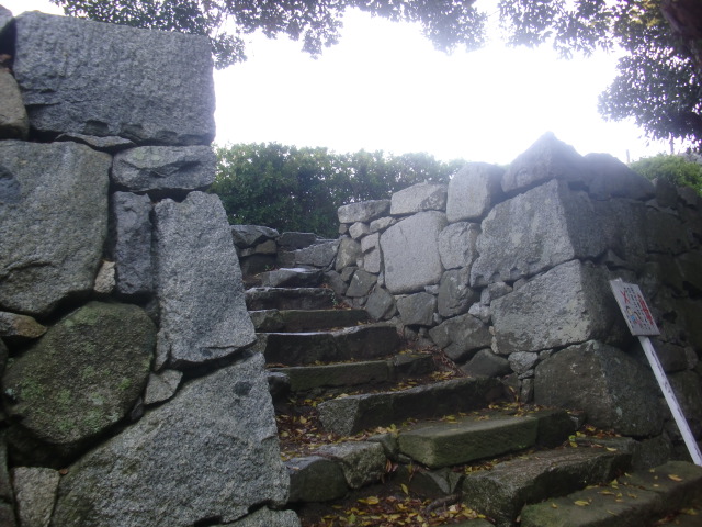 二の丸跡からは何段かに続く郭脇の階段を登っていきますが郭は狭くこんな感じ・・・