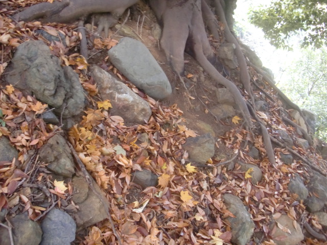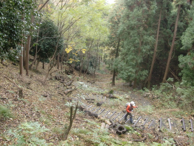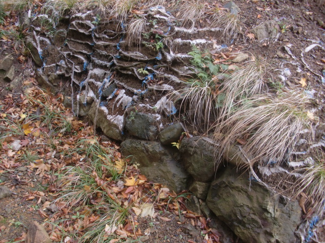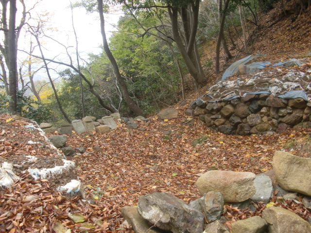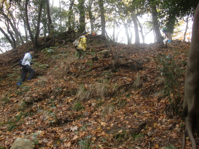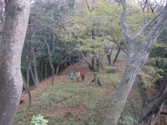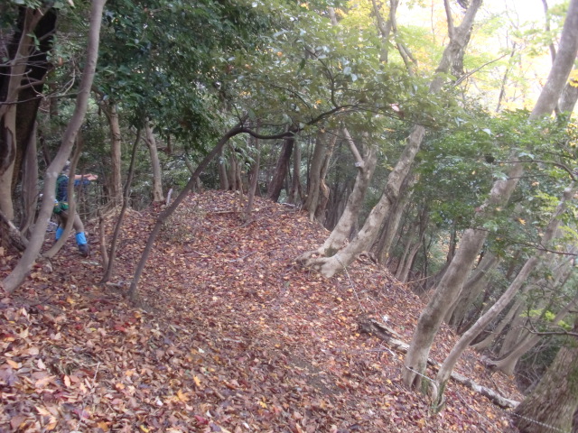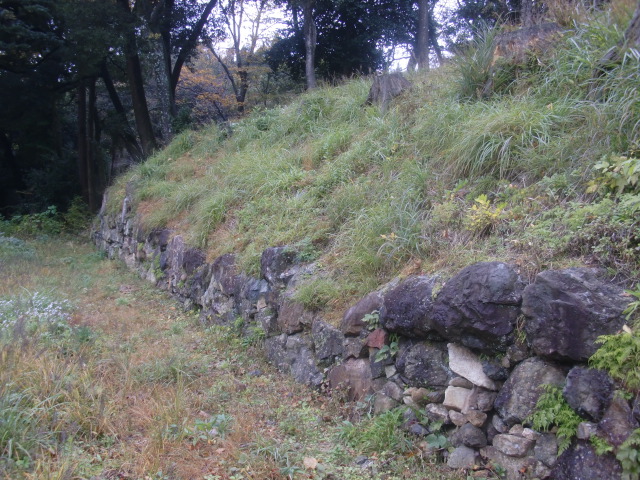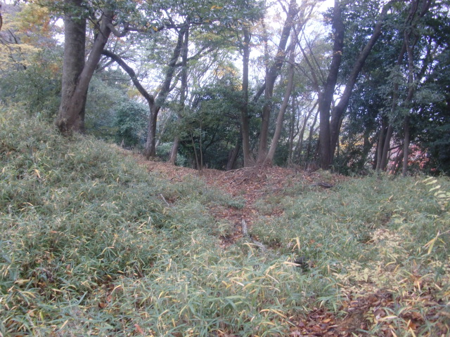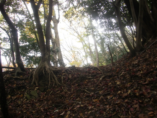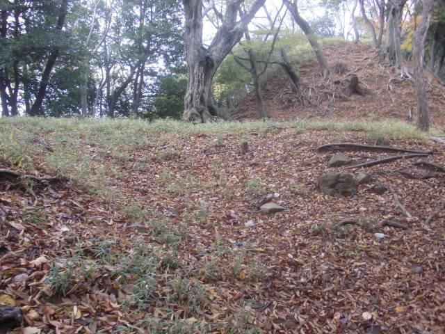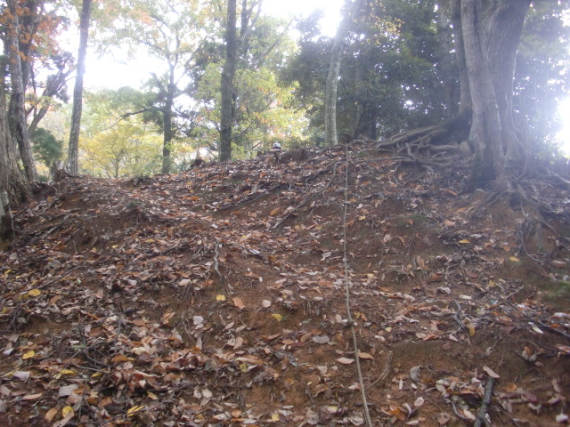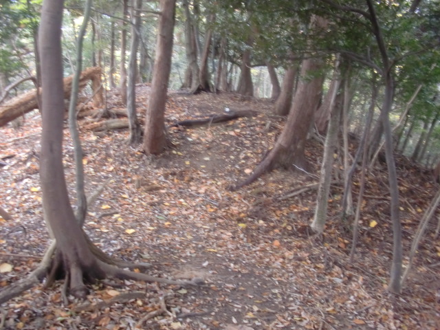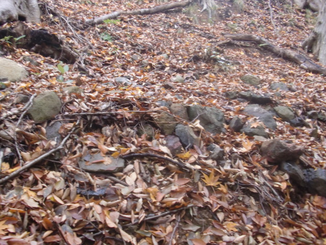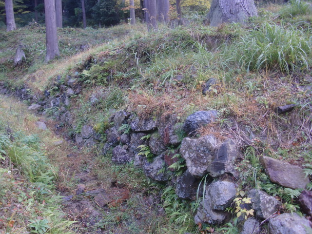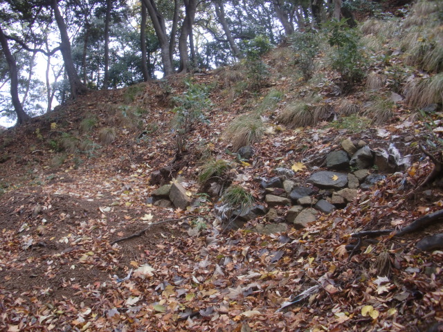 郭間の斜面はなかなかの傾斜ですが石積み跡の痕跡もあり・・・