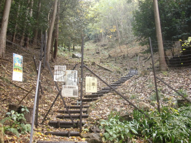 二の丸跡からは何段かに続く郭脇の階段を登っていきますが郭は狭くこんな感じ・・・