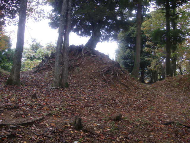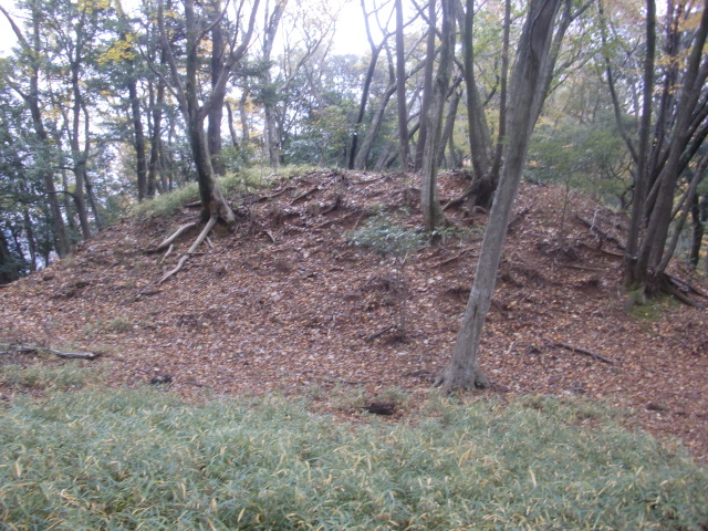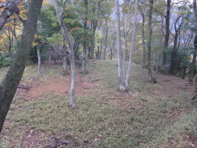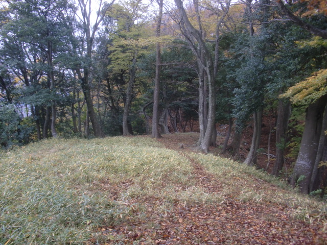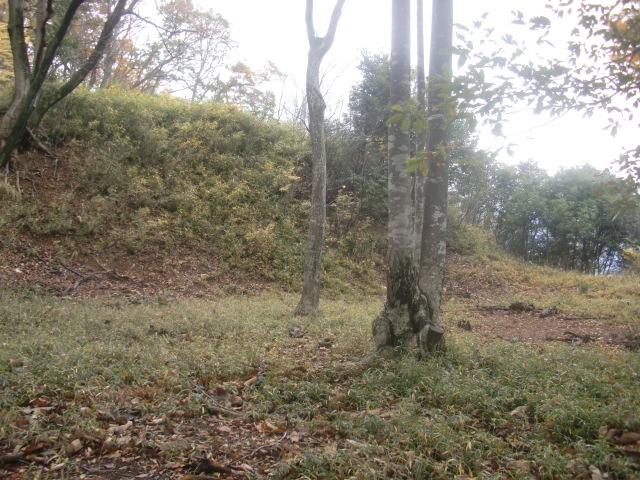 つづら折れに登り続けると西側に延びる土塁に囲まれた郭伝二の丸跡が広がります♪