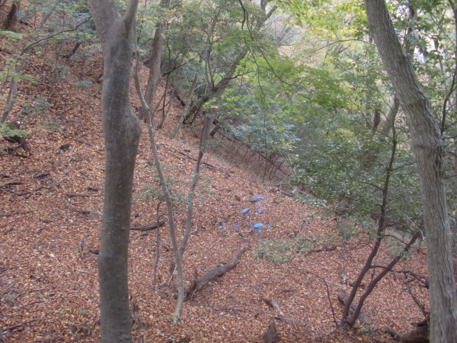 西側は急斜面となりますがロープがあり下に看板があったので下ったのですが・・・