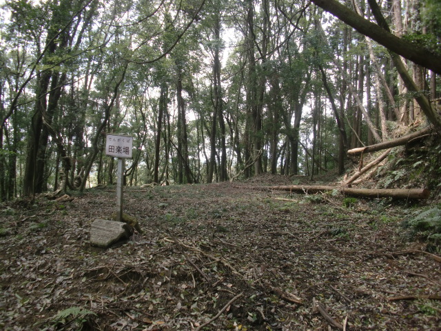 鹿島神社を目指し登っていくと両サイドに段上の郭群が形成(小字小屋)されており、段上郭の上の方には田楽場の看板も・・・