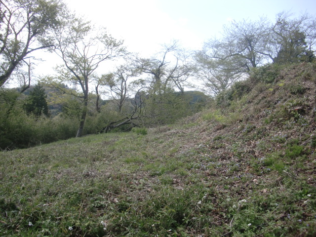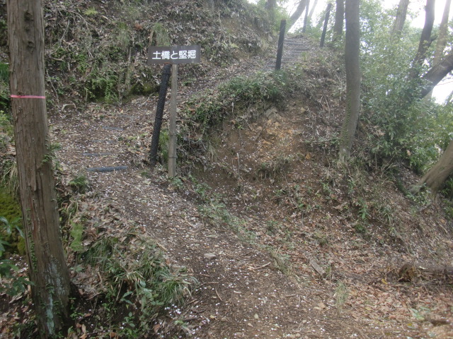 駐車場郭から一段上がると郭の北側に土塁&土塁先には土橋&竪堀があります♪